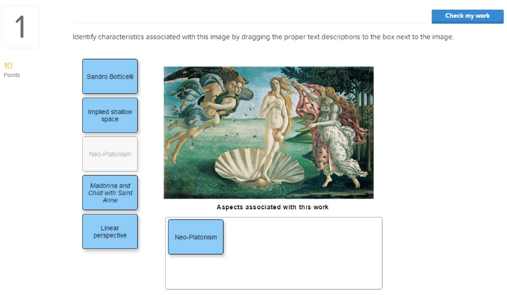 From core concept activities to writing prompts, Connect for Art exercises engage students through ample use of visuals and interactive features.