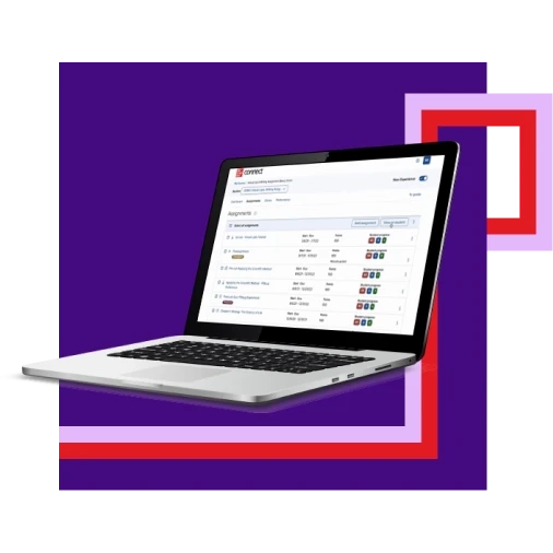 Seamlessly link your Learning Management System (including Blackboard, Canvas, D2L BrightSpace, Moodle, and others) to Connect, for single sign-on and gradebook synchronization.