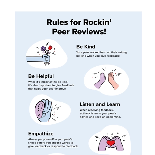 • Encourage strong peer reviews with this printable poster sharing rules and reminders.