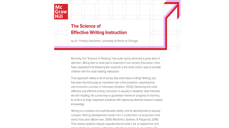 • Explore the 10 key elements of an effective elementary writing program in this whitepaper from leading literacy expert, Dr. Timothy Shanahan.